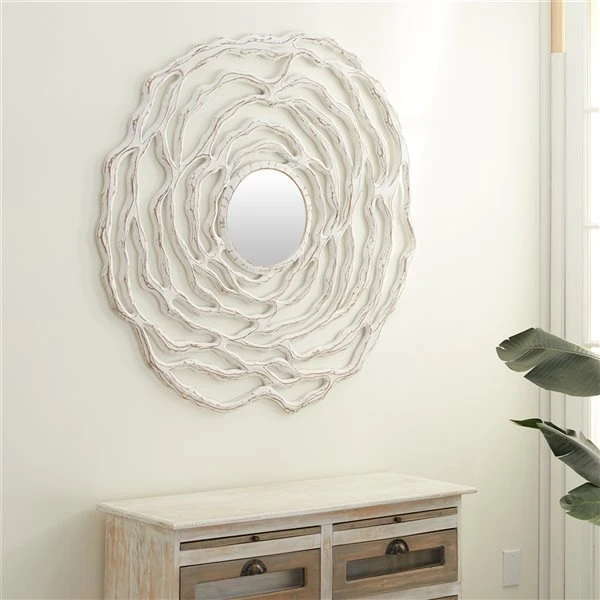Grayson Lane 45-in L X 45-in W Coastal Round White Framed Wall Mirror