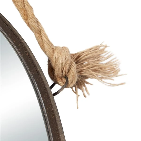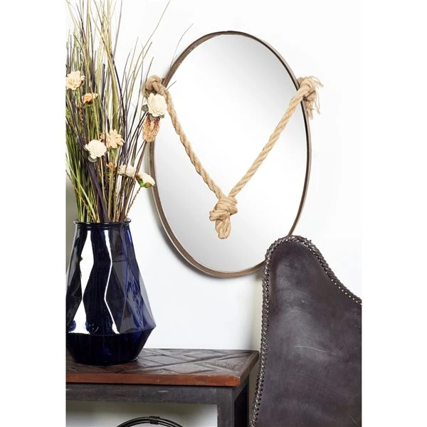 - Made from iron with natural jute rope accents and reflective mirror inlays