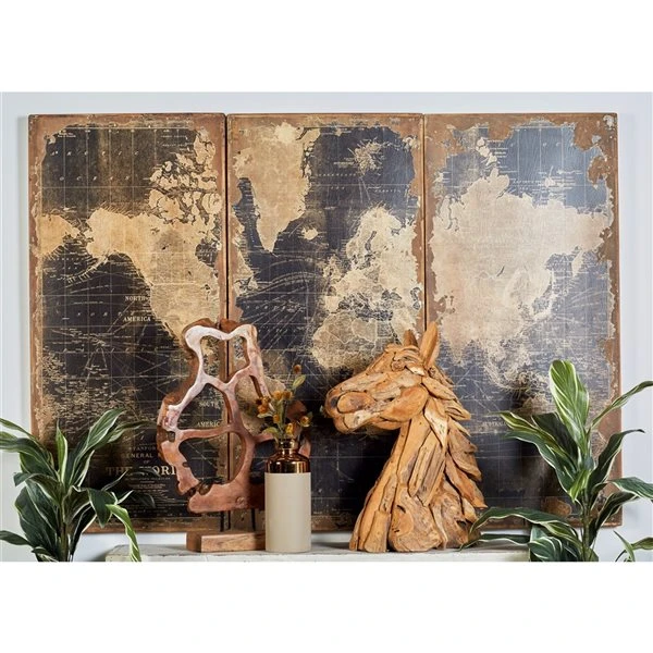 - Features a stylish map divided into 3 rectangular panels in black and brown finish