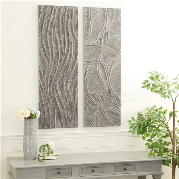 Grayson Lane 48-in H x 16-in W Abstract Grey MDF Wall Accent – Set of 2