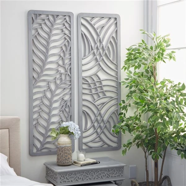Grayson Lane 48-in H x 16-in W Grey MDF Eclectic Abstract Wall Accent – 2-Pack