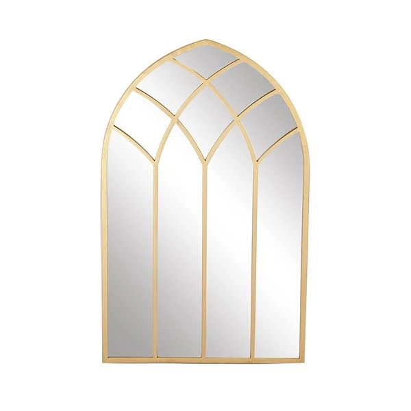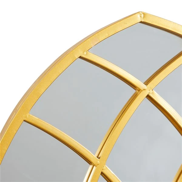 - This elegant wall mirror features a gold-finished overlay with geometric pattern