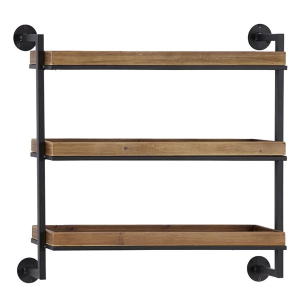 Grayson Lane 35-in x 24-in Brown Wood Industrial Wall-Mounted Shelf