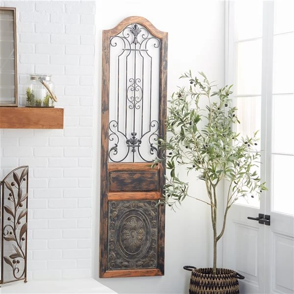 Grayson Lane 72-in H x 19-in W Brown Wood and Metal Ornamental Wall Accent