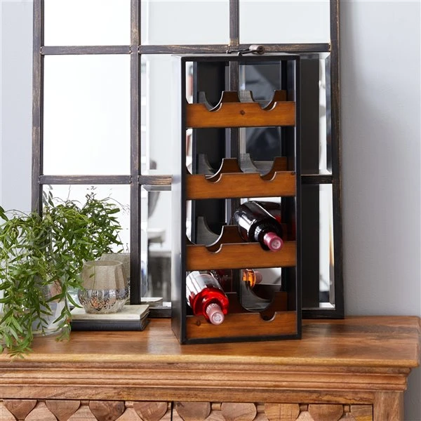 Grayson Lane 8-Bottle Black Wood Industrial Wine Holder Rack