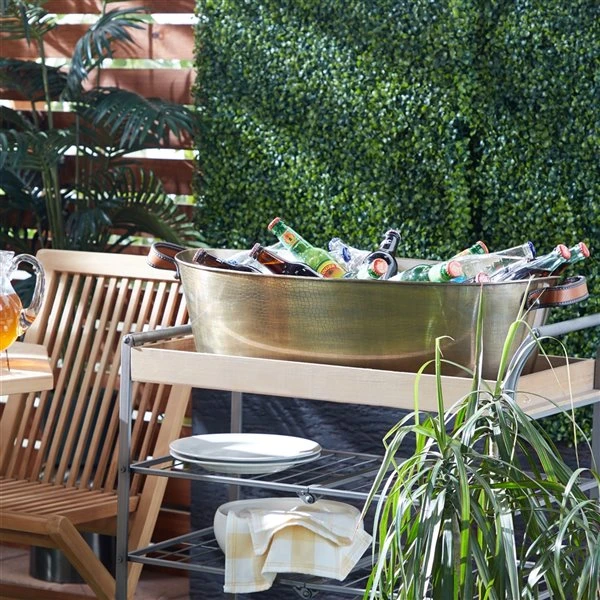 - Enjoy your chilled wine, champagne, or beer in style with this contemporary stainless steel bronze bucket cooler with leather handles