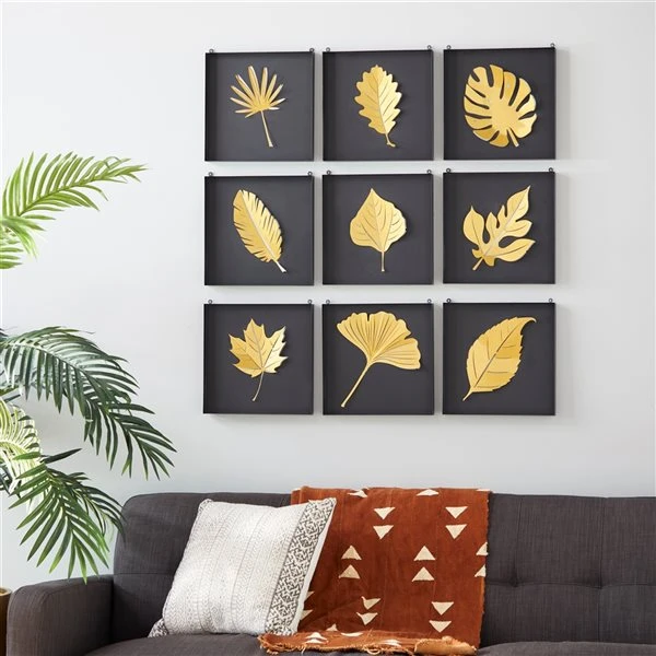 Grayson Lane 9 12-in x 13-in Gold Metal Contemporary Wall Decor – Set of 9
