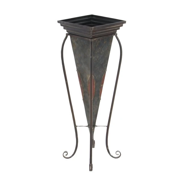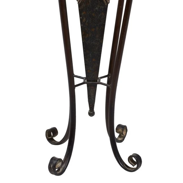 - The traditional bronze patina finish on metal and scroll footed legs create perfect accent pieces for empty room and porch corners