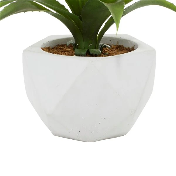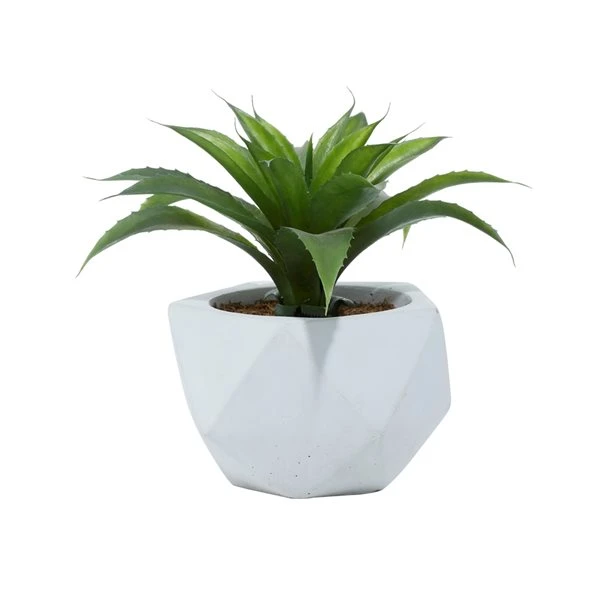 - This artificial succulent plant has glossy green leaves and a faceted white planter