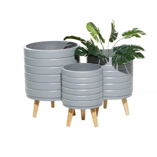 - These planters come in a grey finish with light brown tripod legs