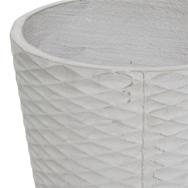 - Feature low profile pots with splayed legs and indented diamond pattern exterior design