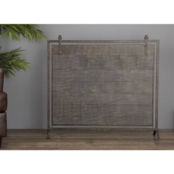- This iron fireplace screen is more than a protective cover from flying embers, but also an ornamental filler for large empty spaces, low-lying dresser, or console table