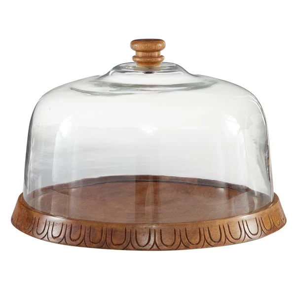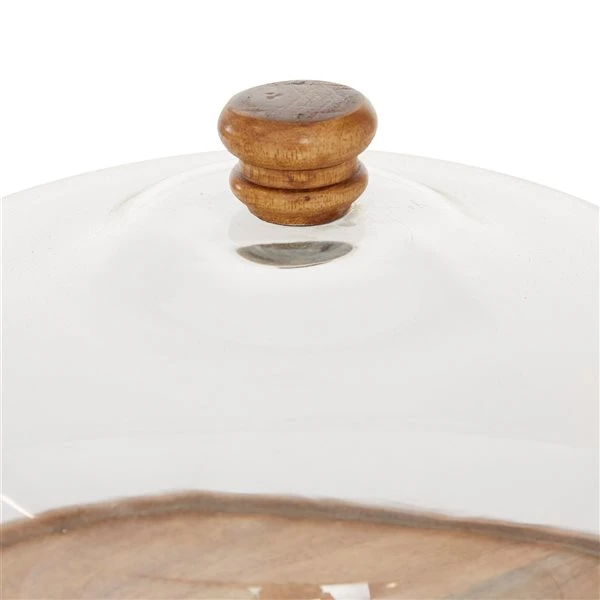 Grayson Lane 9-in x 13-in Natural Cake Stand with Cloche – Brown Wood and Glass