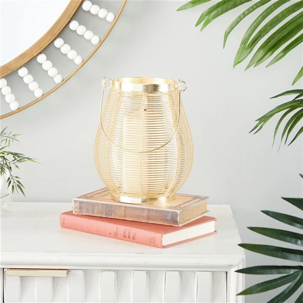 Grayson Lane 9-in x 7-in Glam Lantern – Gold Iron