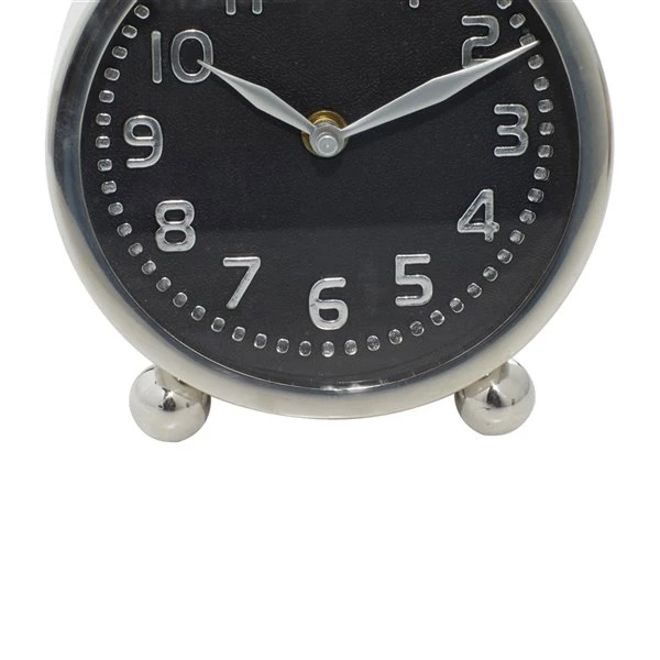 - Set of two small metal table clocks with bold Arabic numbers on each clock face