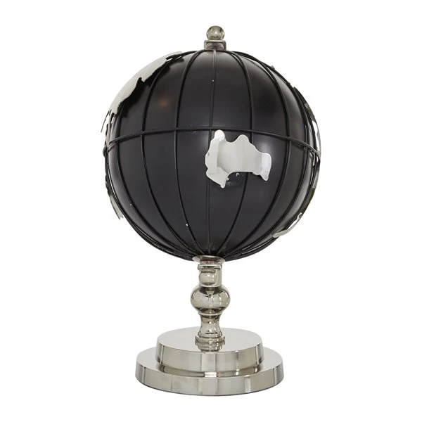 - This black and silver decorative globe is made of solid and polished aluminum, iron and stainless steel