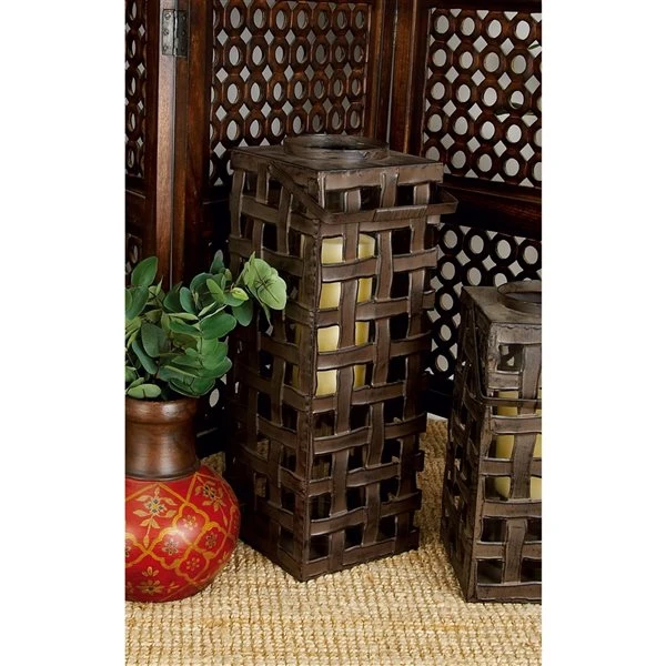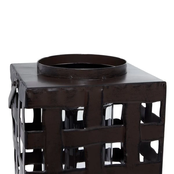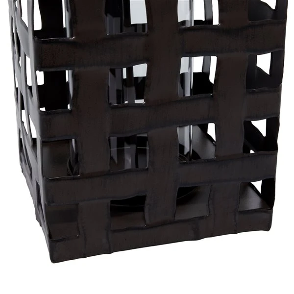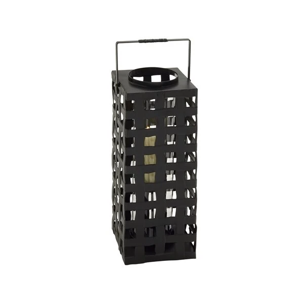 - This candle lantern features a square-weave pattern and internal glass sleeve to secure a candle