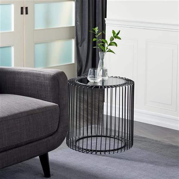 Grayson Lane Black Metal and Glass Round End Table