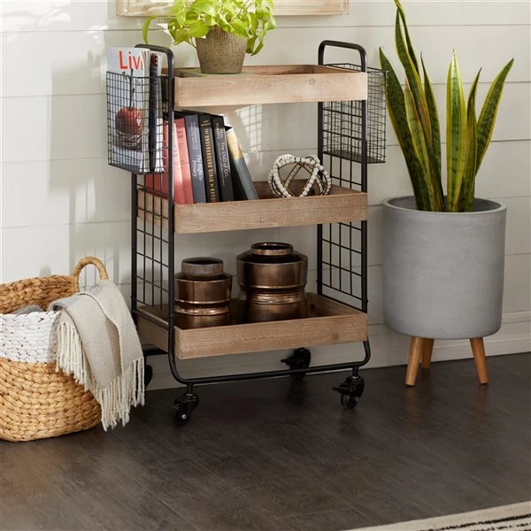 Grayson Lane Black Metal Base with Wood Top Kitchen Cart (33-in x 25-in x 12-in)
