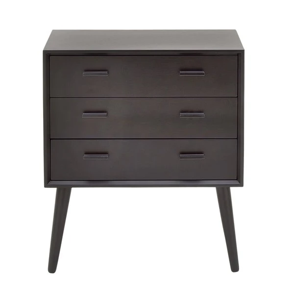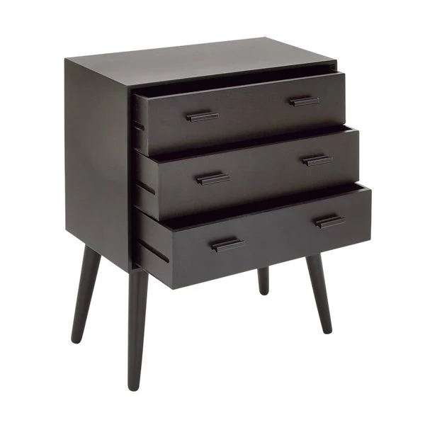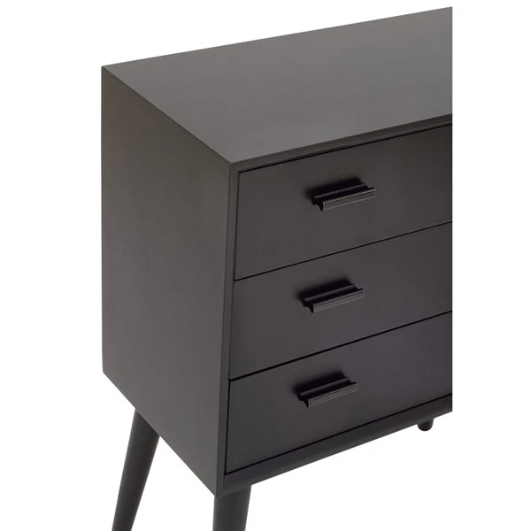 - This home decor features 3 long rectangular drawer compartments with 6 minimalist handles and a tripod-inspired feet