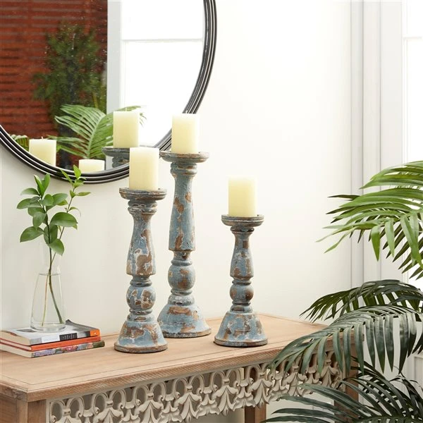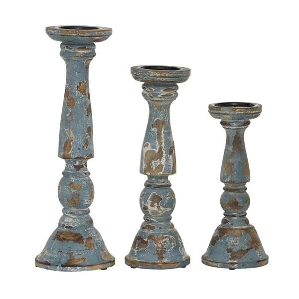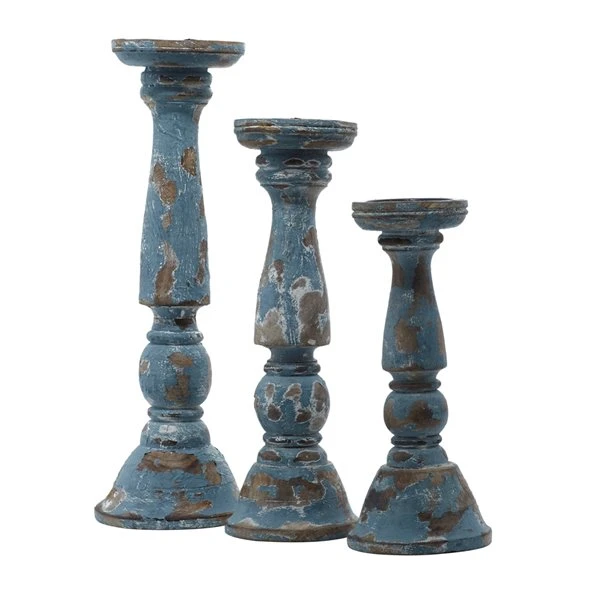 Grayson Lane Blue Wooden Pillar Candle Holder – Set of 3