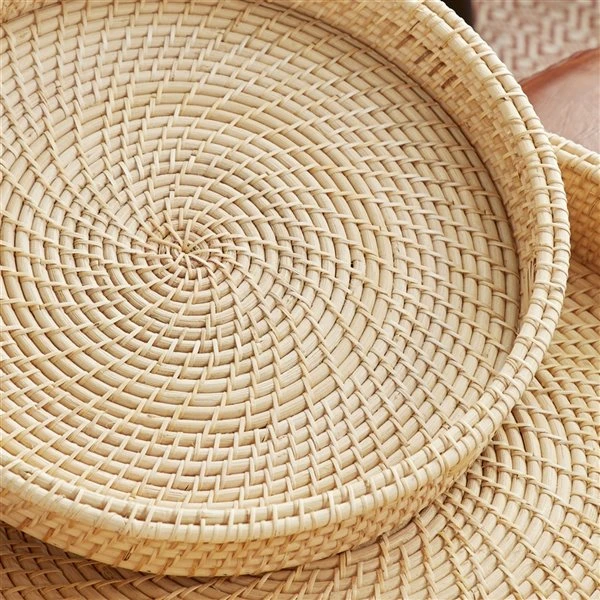 - These minimalistic rattan bed trays feature a captivating weaved-patterned design with handles