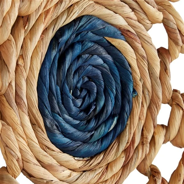 - Features a loose weaving of dried plant materials to form the flat basket concept