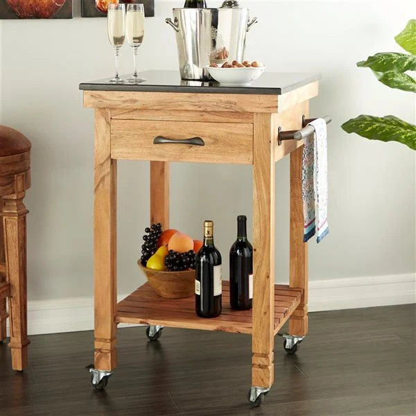 Grayson Lane Brown Granite Base with Granite Top Kitchen Carts – 42.15-in x 29.75-in