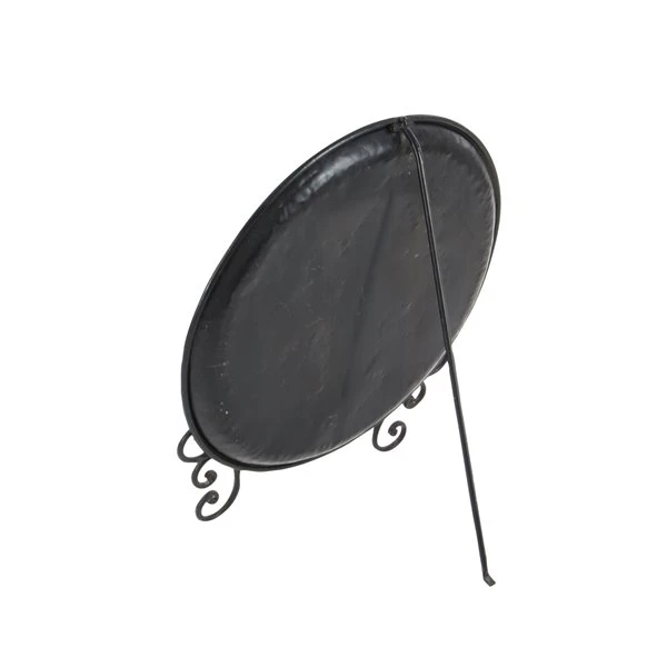 - This traditional style inspired design brown iron plate with stand features a round profile with a detailed fleur de lis flower embossed at the centre