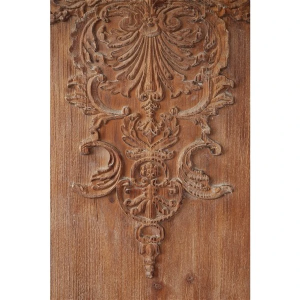 - Features antique frames, festoon, and acanthus designs throughout the light brown and mocha brown wood panel tops and bases