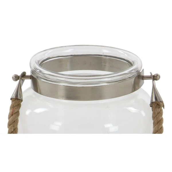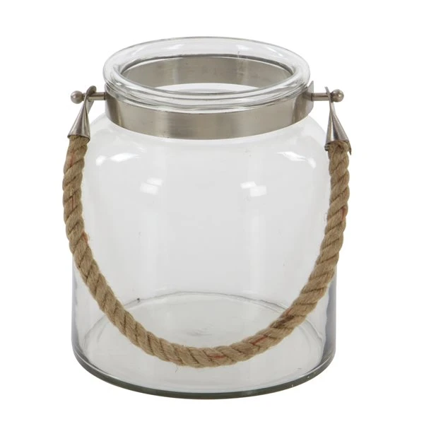- This lantern is made of glass and jute rope