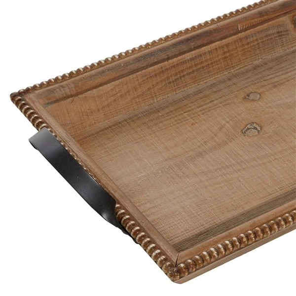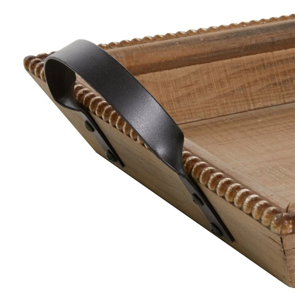 - Each brown wood decorative tray features whitewashed ornate wood carving vine rim patterns