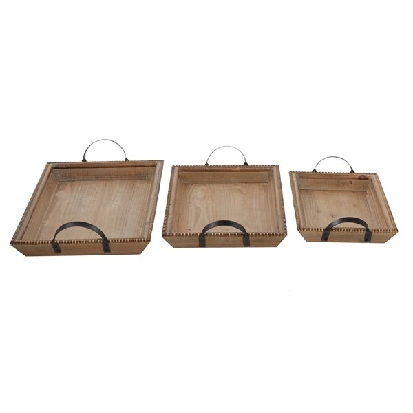 Grayson Lane Coastal Brown Wood Trays – Set of 3