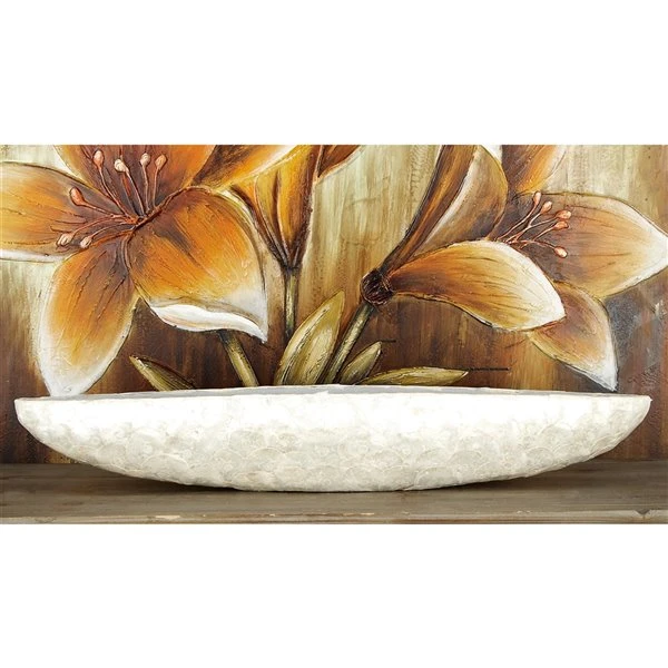- This poly stone and Capiz long bowl will add a hint of relaxation and peace when displayed on tables and shelves in your coastal style home