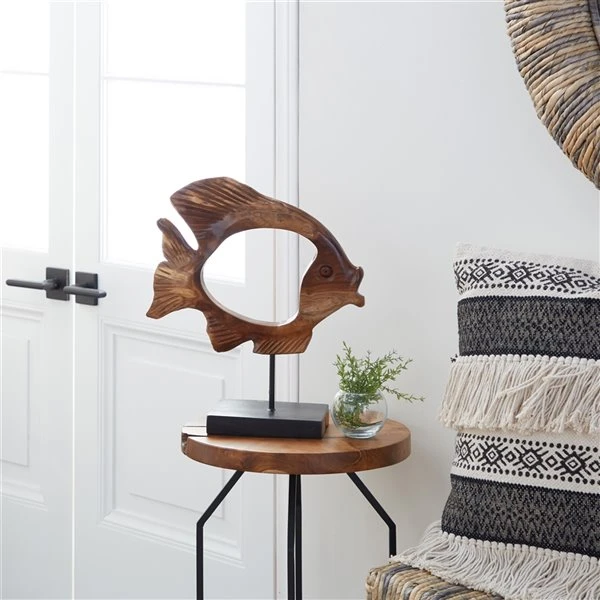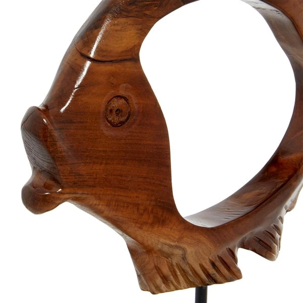 Grayson Lane Coastal Fish Sculpture – Brown Teak Wood – 17-in X 15-in