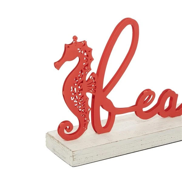 Grayson Lane Coastal Red Iron/Wood Beach Sign Tabletop Decoration