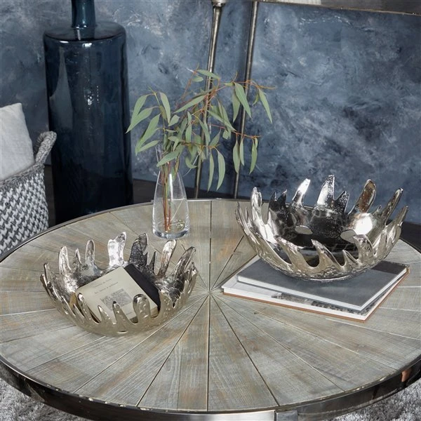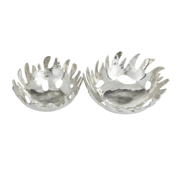 These decorative metal bowls feature an abstract cut-out design with irregular holes and a round base.These silver bowls are made of highly durable aluminum.