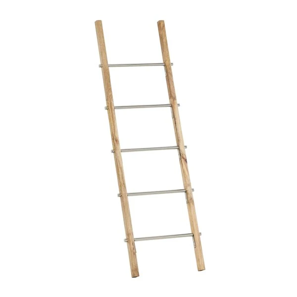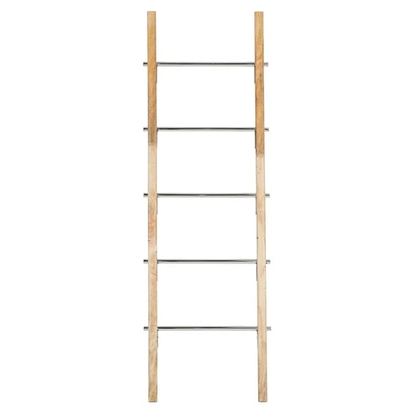 - This natural wood ladder rack is crafted with wood and stainless steel