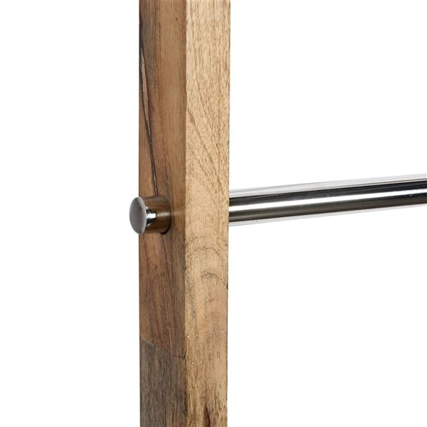 - This natural wood ladder rack is crafted with wood and stainless steel