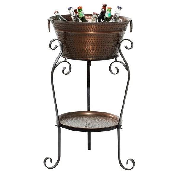 - This hammered bucket cooler on stand is crafted with solid metal material