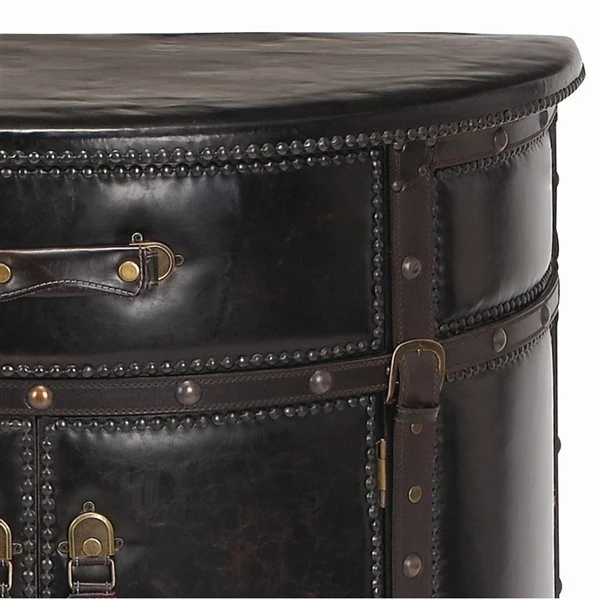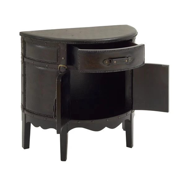 - Cedar wood and MDF with faux leather upholstery and brass hardware