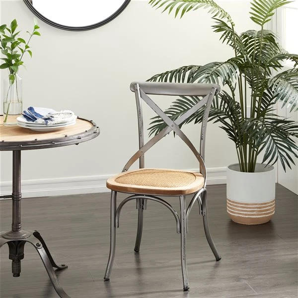 Grayson Lane Farmhouse 18-in W Silver Iron and Wood Dining Chair