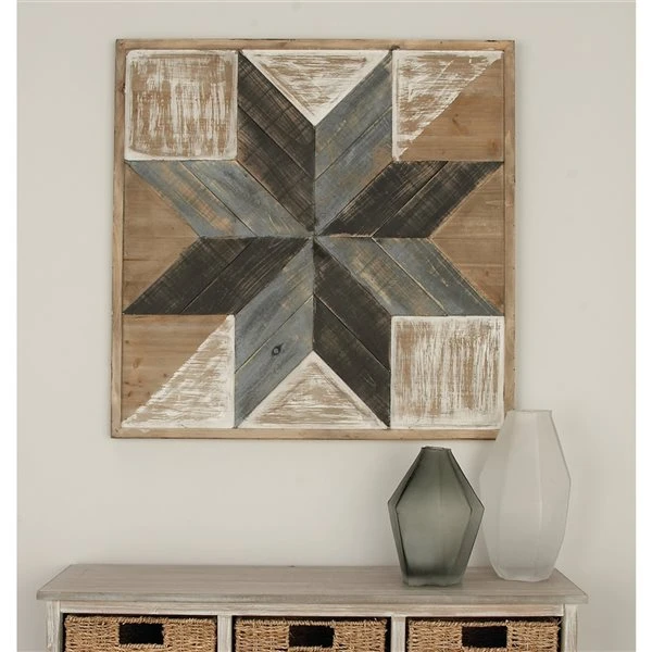 Grayson Lane Farmhouse Abstract 31-in x 31-in Multicoloured Wooden Wall Decor