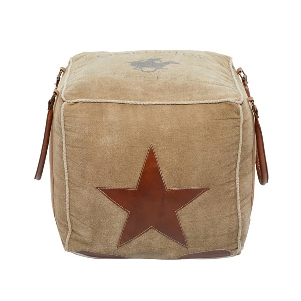 - Bold typographies and muted monochrome colour dominates this ottoman with faux leather handles and star tailored design