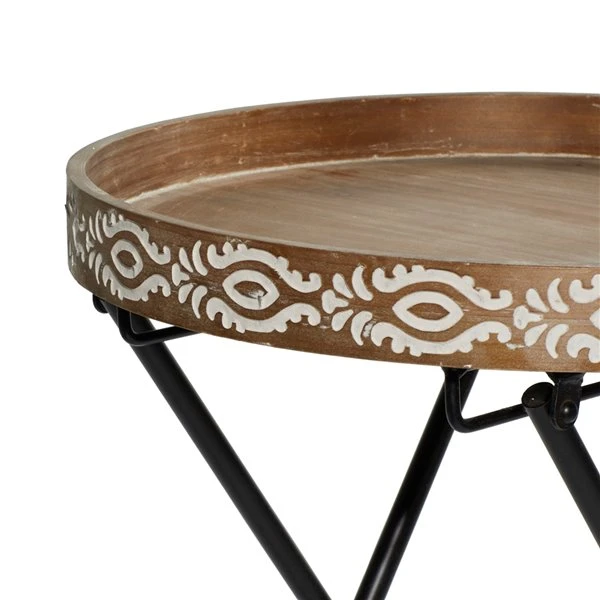 Grayson Lane Farmhouse Grey Metal with Wood Round End Table