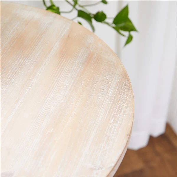 - This pedestal side table highlights whitewashed tabletop and leg stand over a natural light brown wood finish