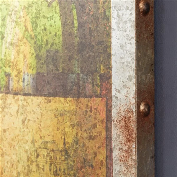 - Decorative rust over the rectangle metal wall art panels with bolts around the edges