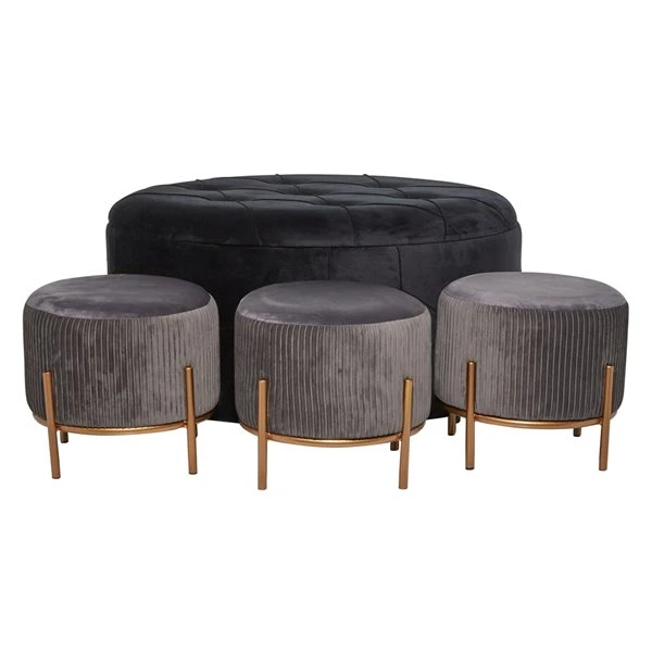 - This ottoman stool set is made of MDF body and carries a velvet seat cushioned and metal legs