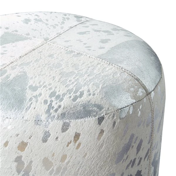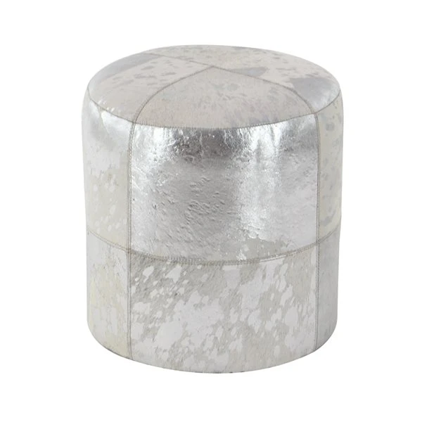 Grayson Lane Glam Silver Genuine Leather Round Ottoman