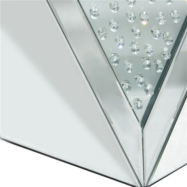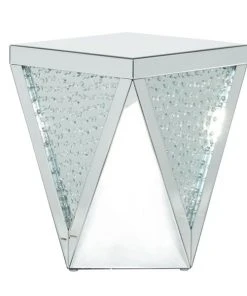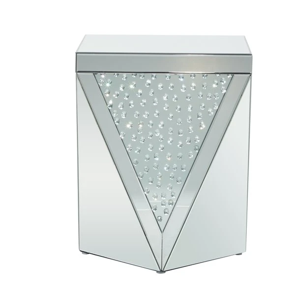 - This silver geometric mirrored side table comes in a sophisticated silver finish that suits any glam-inspired interior design